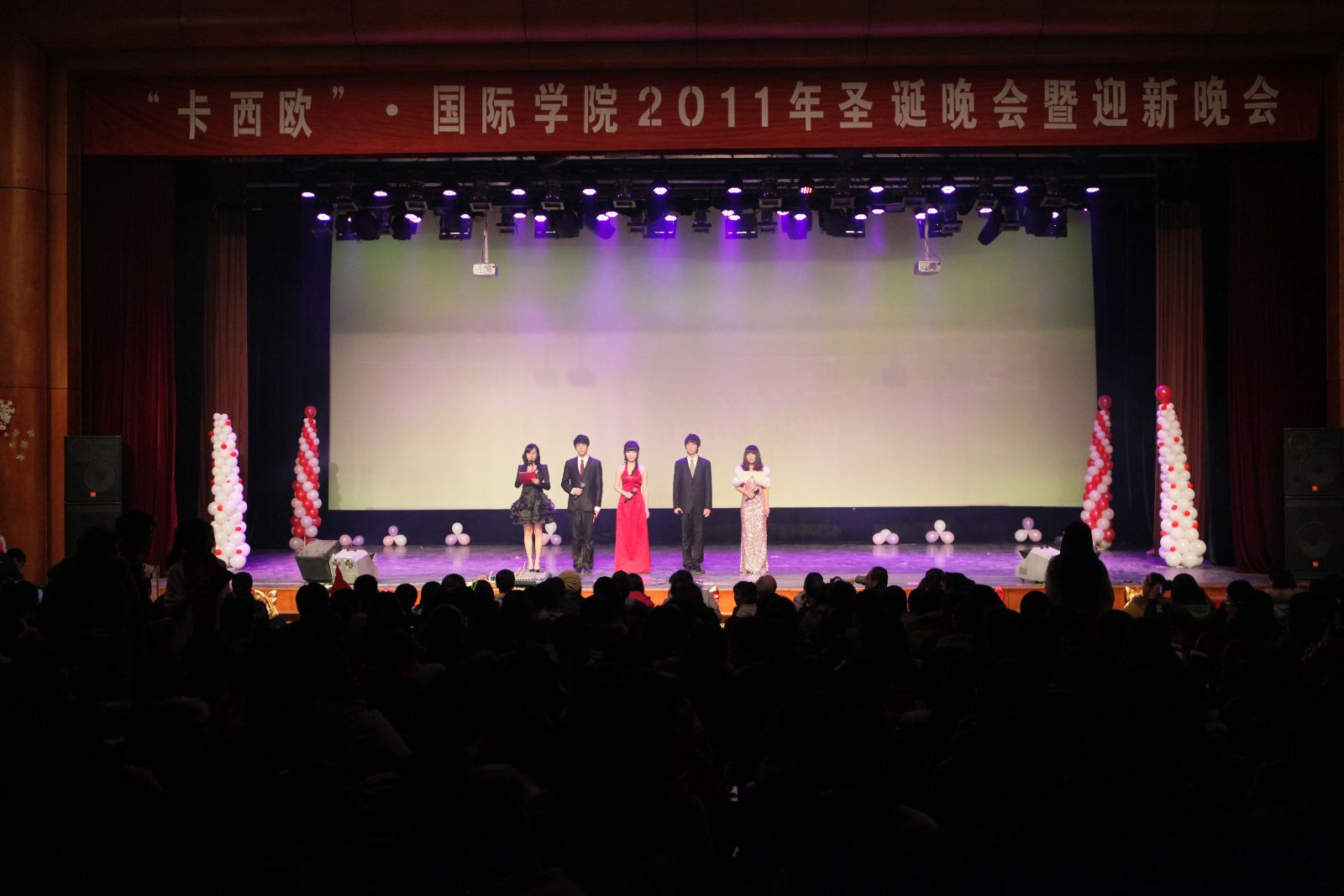 中英双语主持、大屏幕同步直播、现场微博互动、外教精彩表演……12月22晚6点30分,备受期待、亮点纷呈的WilliamHill中文官网入口大型圣诞晚会《Scream Christmas》在大礼堂上演。晚会现场座无虚席,气氛热烈,高潮迭起,给在场的观众带来一场视觉盛宴。