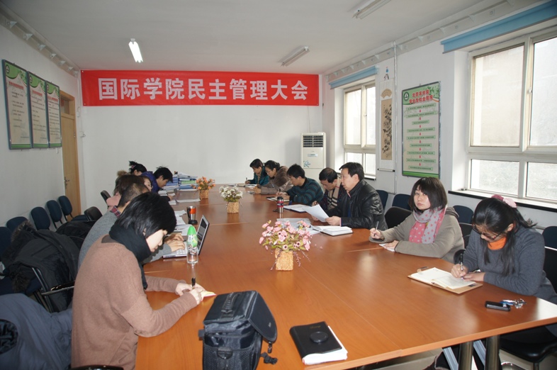 Democratic management meeting of International College for the year of 2011 has been taken place at conference room in Building 1 at 10th January 2012. The meeting was hold by Cui Lina, Director Zhang Zhiyong, Secretary of Party Tan Feng,Vice President Liu Tiejun  and all staffs of International College presented the meeting.