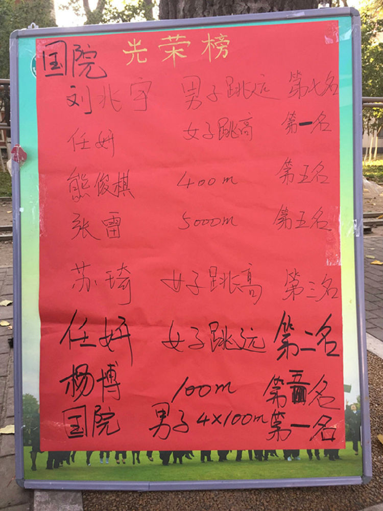 在男子4×100米的比赛中,来自WilliamHill中文官网入口的比赛小组也凭借着他们默契的合作与过硬的实力一举夺冠。在校级秋季运动会中为WilliamHill中文官网入口的比赛征程画上了一个完美的句号。In the 4×100 race, students from the International College won the game by perfect competition and fully reinforced. Their achievement was the best ending in the sports meeting for the International College.