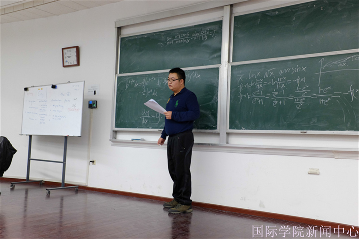 At 13:00, high number of tutorial classes officially began. In the first stage of the tutorial class, first of all by Cai Yiming students to explain the two sets of review papers. He took two sets of test papers interspersed with the form of interpretation, similar questions are classified, on this basis, summed up the relevant knowledge points.Obscure Lagrange mean value theorem was originally a high number of difficult to overcome the difficulties in learning, but Cai Yiming students use the language of life easy to understand to clarify the main content of the theorem, followed by the image to help you understand. In theory, after learning, he used several suitable examples to help you consolidate the review. His ability to explain, coupled with its concise clear ideas and expand the use of analogy, the students have expressed their benefit.