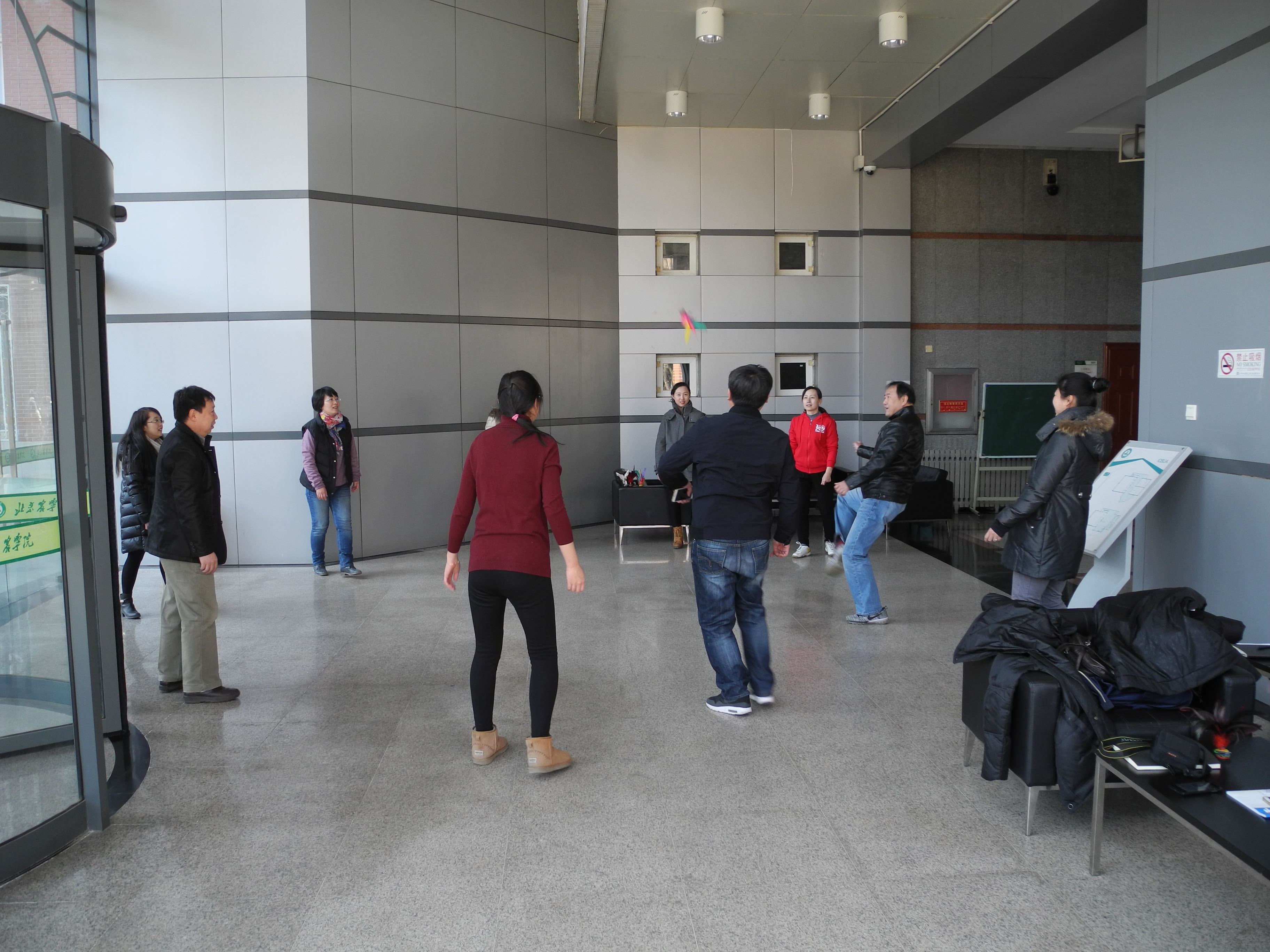 热身之后,每位女教工先进行个人踢毽子运动,为了增加活动的趣味性,还组织了集体踢毽子游戏,多位男教工参加了活动。老师们各显身手,充分展示了运动天赋,活动现场高潮迭起。