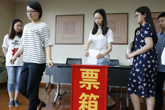 6月27日,公司党总支换届选举党员大会在图书馆303会议室胜利召开,党委副书记、董事长王慧敏同志出席大会,总支副书记、副经理霍春艳同志主持大会。