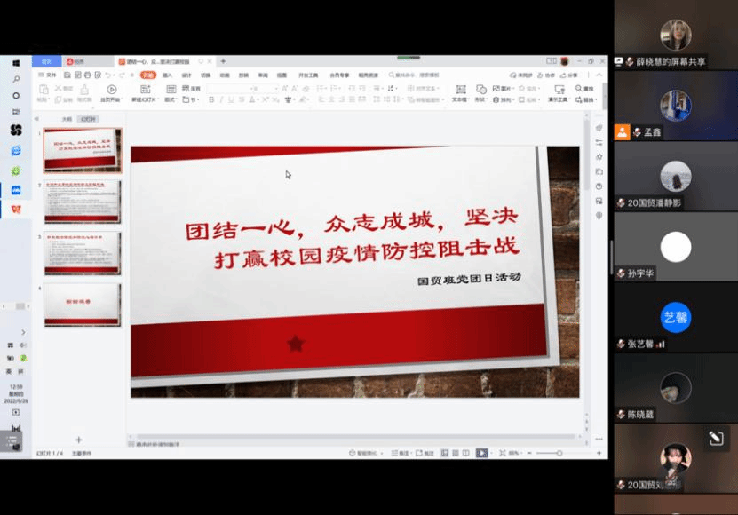 今天,团支部主持召开了抗疫主题团日活动,各位团员积极发言,表达了带头遵守防疫政策,坚决与疫情抗击到底的决心。